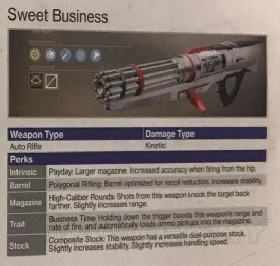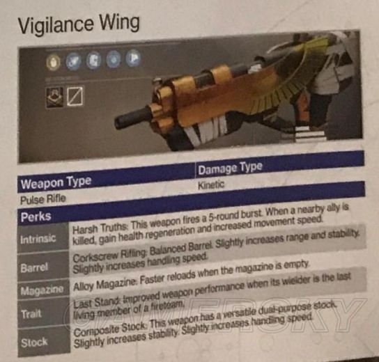 固有技能:如果身边有队伍成员也装备着这把枪,则会获得威力加成,最多叠加6层。(打Raid或者天梯全带这个不知道效果如何)。