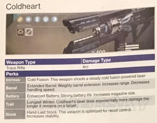 武器类型:Trace Rifle(追迹步枪?全游戏唯一的特殊类型枪,然而并没有追踪功能)。