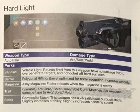Hard Light,硬光,Hard Light和MIDA Multi-Tool是2代首发唯二回归的两把旧枪,有所改进,1代的时候是没有属性伤害的。