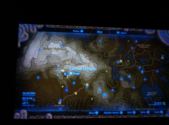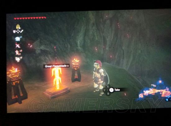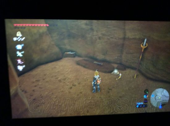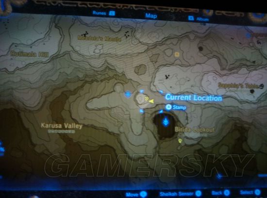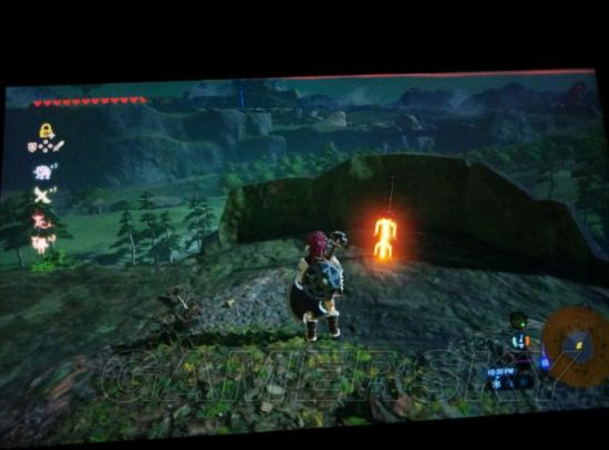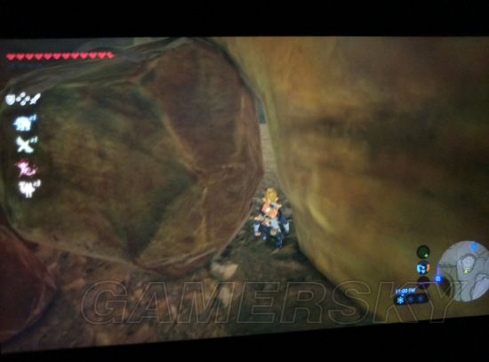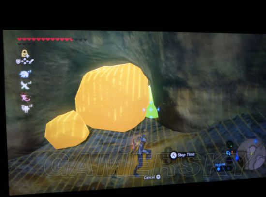 位置如图,从高塔上飞下去,就到了,外面一块石头直接推开,里面的那个石头用时停,然后打几下就推开了,蹲着进去,第一次进去还会有一个箱子,旷野之息里的箱子是不会刷新的,开一个少一个,但是旁边的金弓什么的以后还是会刷新的,金弓的伤害不高但是射程很远而且是第一视角用来做一些任务或者射呀哈哈很实用,因为不常使用,所以,需要的时候来找基本上都会有的,其他的武器也有很多地方刷,但是金弓比较少,我现在就知道这一个,还有一个是神庙箱子给的。