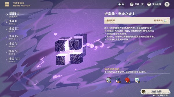开始挑战前,需要先选择挑战的难度,以及附加的【变奏】。按照所选的【变奏】以及挑战难度,完成挑战可获得相应积分。