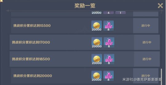 【积分和奖励】首次在任意难度下挑战成功时,可以获得原石奖励。