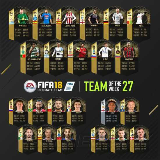《FIFA18》EA官方会根据每周球员在现实中的表现评选出每周的最佳阵容,下面就为大家带来《FIFA18》第27周最佳阵容,由本周上演大四喜的萨拉赫、伊卡尔迪领衔,希望大家喜欢。
