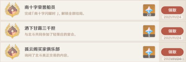 北斗邀约里的三个成就,正常完成所有结局就可以获得