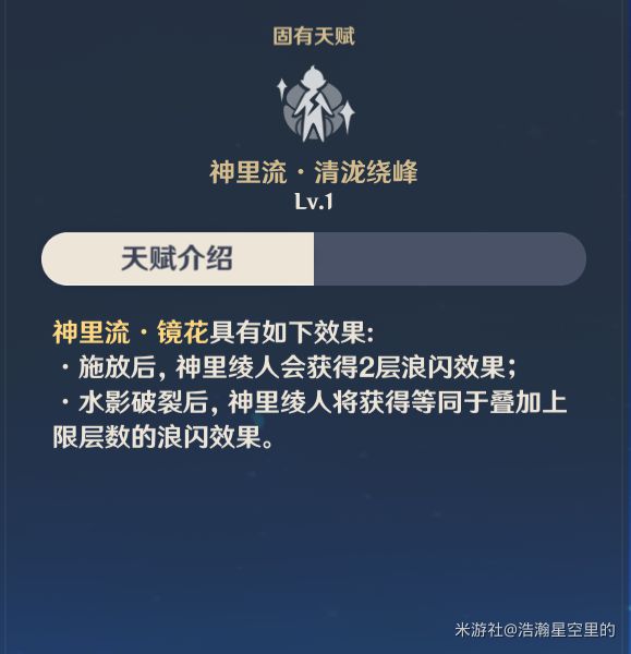 效果:施放E技能之后,绫人的下一次瞬水剑攻击命中敌人时,将进行两次额外的瞬水剑攻击,各自造成绫人攻击力450%的伤害,该伤害不受浪闪加成。