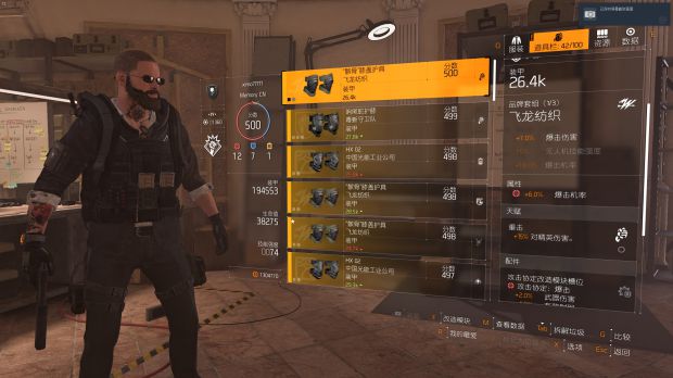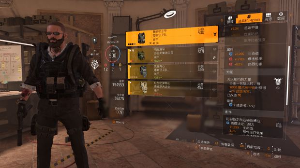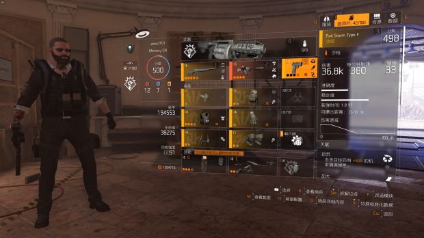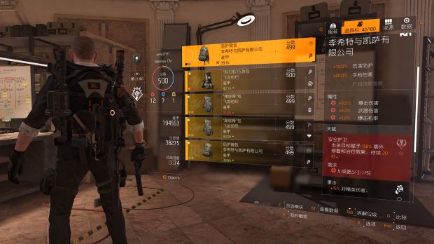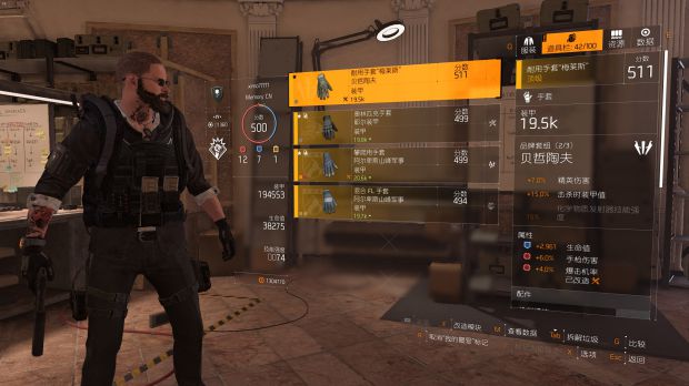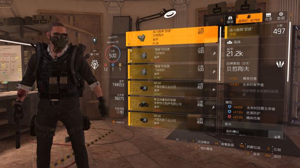 背包同样选择rh,rh2件触发20%手枪增伤,这里需要说一下的是,楼主的这个背包并不理想,最好是自带2天赋都是圆圈的(精英伤+10%护甲提升)或者能刷到理想的贝哲套背包的话在维持7体的前提下可以换rh面具,因为rh面具性能比贝套面具优秀。