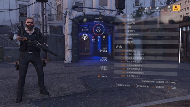 面板属性,由于目前版本无法显示随身武器的属性,手枪配件暴击几率+15%。
