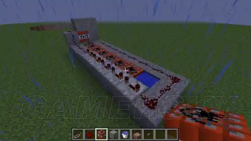 要在动力铁轨上放至少两个TNT矿车(把准星对准铁轨放)
