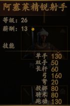 非常优秀的弓箭手,伤害和续航都是佼佼者,且熟练度高人一等!