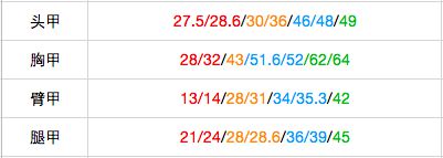 排名为其护甲值按配比加权平均后在七种「远程步兵」中的排名