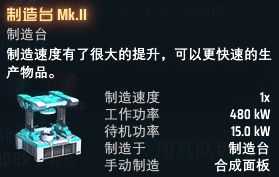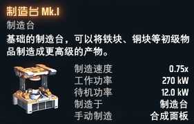 可以看到电弧熔炉和制造台二制造速度都是1,制造台一的制造速度是0.75.所以我们的量化都是按照制造速度1来算的,先用制造台一,有了制造台二我们再把制造台一换成二(用U键就可以把制造台一升级成制造台二了)。