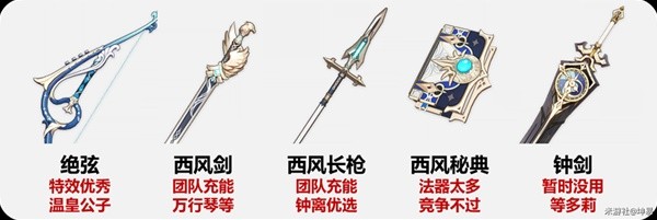 西风系列可以提供全队充能,是非常不错的辅助武器。