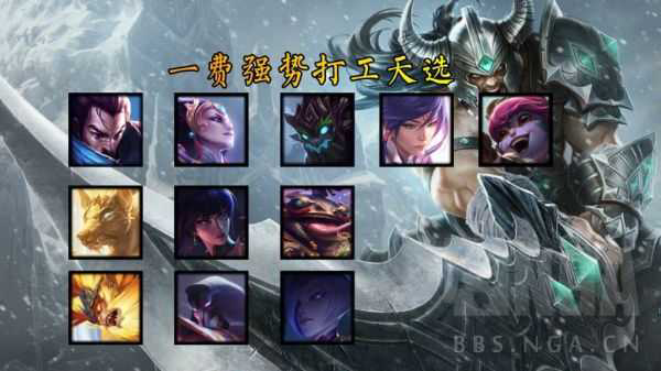 第1排的棋子无论那种天选都属于可以无脑拿的。第2、3排棋子就需要看天选情况选择,狗头的摄魂天选,豹女射手天选,塔姆、斗士天选,猴子的重装天选;卡牌与蜘蛛的猩红天选。以上1费天选都是可以让打工阵容轻松过度到3阶段结束,强度上是比较有保证。