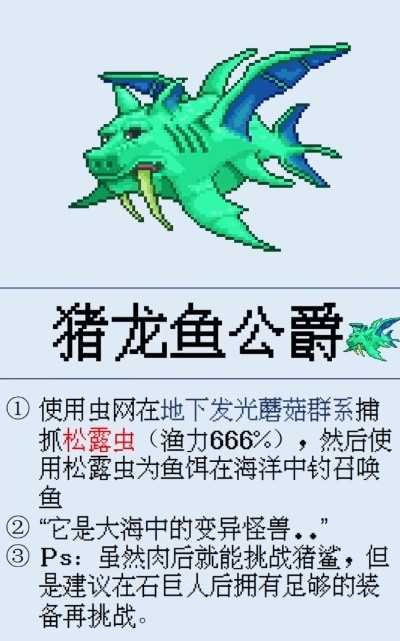 正文 《泰拉瑞亚》猪龙鱼公爵召唤方法 猪鲨怎么召唤 游戏小达人 /2025-11-29 09:52:21 /2 浏览量 1129 《泰拉瑞亚》肉山后的BOSS强度大幅提高,其中猪鲨BOSS强度非常高,想要了解召唤方式的玩家请看下面“不过如此太阳”带来的《泰拉瑞亚》猪龙鱼公爵召唤方法,希望能够提供帮助。 花阴月,柳梢莺。 -- 展开阅读全文 --