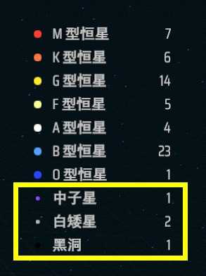 右侧列表中子黑洞白矮星的数量是固定的(恒星数量不足64时,白矮星可能为1)