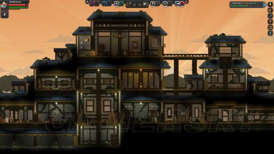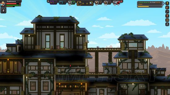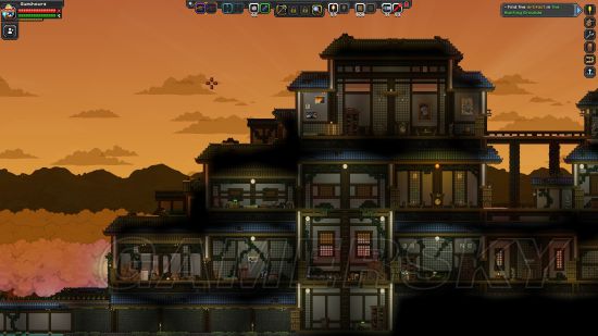 鲛人天守,一般会在初始星系生成,非建筑党也能住好房子,只要进去清空里面的怪,把所有灯点亮,放个旗就能直接使用。