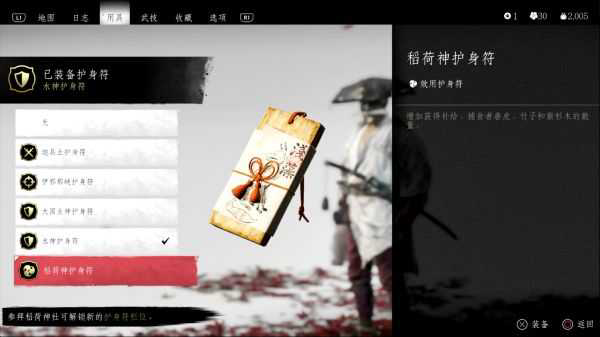 首先我来教大家可以将获得的材料数翻倍的方法,那就是获得这个名叫【稻荷神护身符】的,大型效用护身符。可以增加获得补给、捕食者兽皮、竹子以及紫衫木的数量。而增加的数量,四舍五入之后近乎于翻倍了。