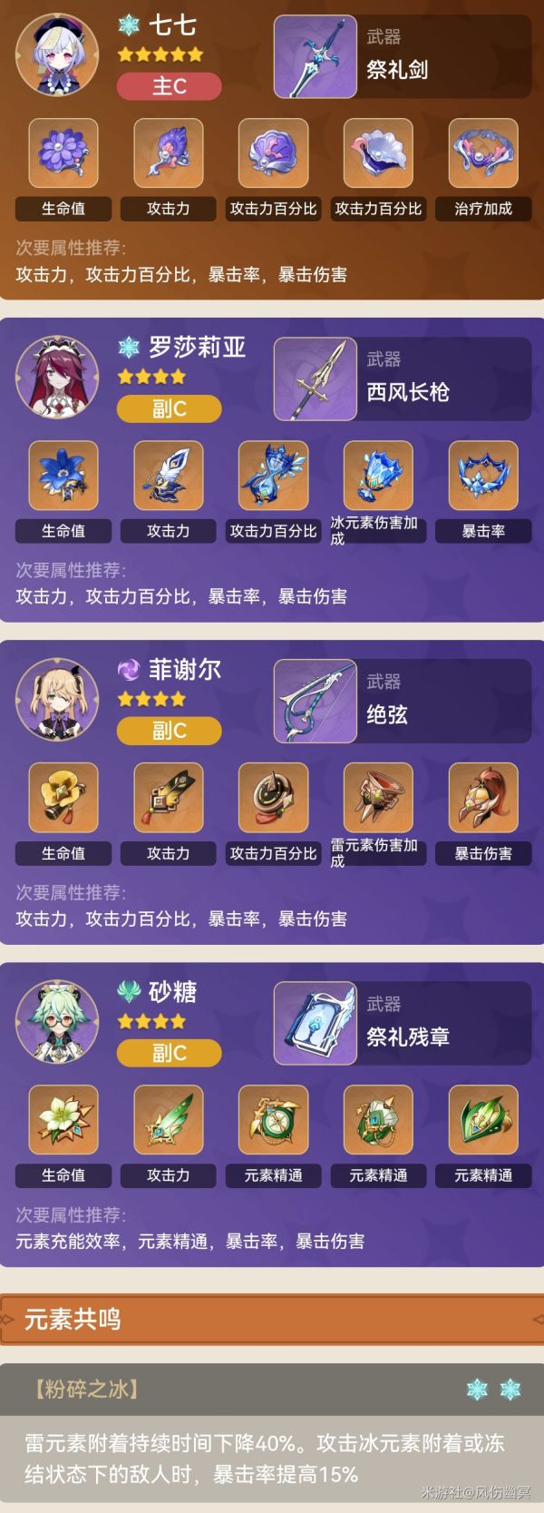 砂糖自己打自己的风伤,并且减元素抗和聚怪也起到了帮助。当然,还是堆精通也可以。
