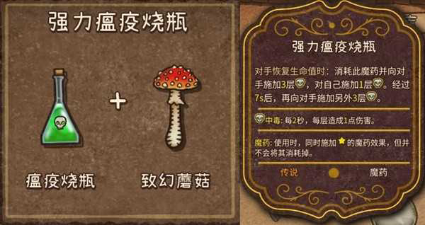 4.强力瘟疫烧瓶(传说,魔药):瘟疫烧瓶+致幻蘑菇