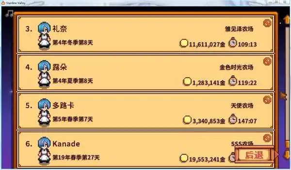 完美度百分百之后花两个半月新建8个鸡舍,养100只金鸡(包括原本就有的鸡舍里养4只),提前去下水道的雕像那里把耕种技能改成畜牧人和鸡舍大师可以3天孵化一次金蛋,并且迅速提升金鸡的好感(基本上只靠自动抚摸机的话最多三到四个月就可以满好感)
