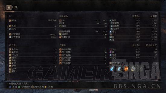 生命30,集中35,智力60,剩下的全点运气,装备暗月誓约、金蛇、宝箱头、灵魂结晶枪、法兰速剑等和七种颜色的石头(七色石),出发!