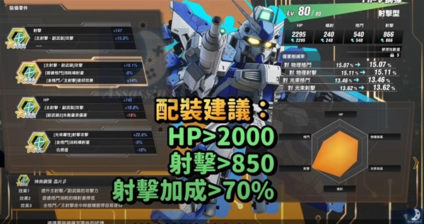 然后射击这边推荐大家就是把射击拉高,同时你要让词条上面尽量要有,主射击还有副武装的攻击力都有提升。