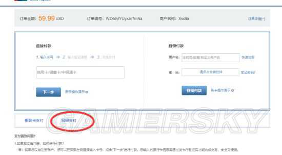 步骤2、选择网银支付,填写银行卡后就会跳转到另一个页面(笔者用的是建设银行卡)。