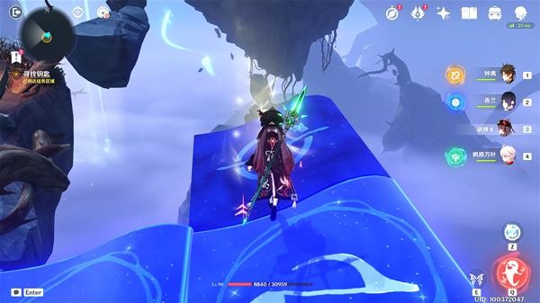 3.进入后,我们会在一个浮空岛上,在西方向有一个鼓,敲击即可