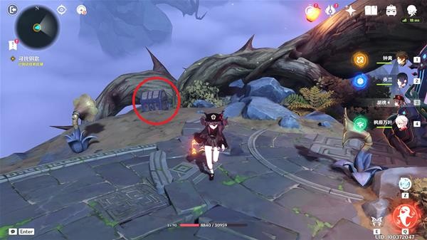 10.拿完宝箱先不急着走,那个风场是飞不到对面的,我们转动一下标记位置的音响,再用一次树琴