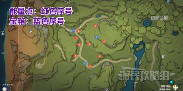 ①③宝箱开启前需要打怪,②宝箱需要收集能量粒子。②宝箱的一些能量粒子会在跳跳蘑菇附近出现,可以先找蘑菇并通过蘑菇跳到空中寻找并拾取,如果实在找不到的话可以将时间调整为夜晚。