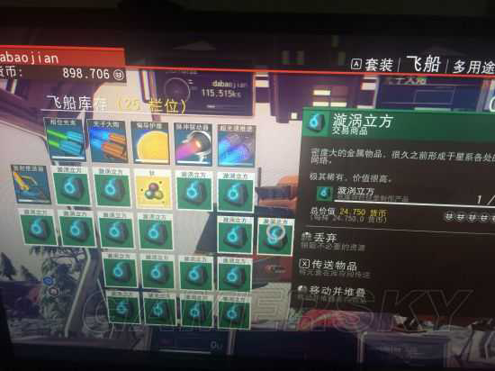 我顺着路线走偶然到了这个星系 主星上的所有山洞里头满地都是一种叫做旋涡立方的东西 一个可以卖2W4 我就此发家致富 换上了25格运输机。