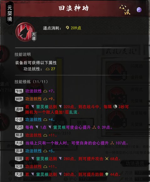 最后说一下地狱难度开场,还是起手加10点攻击力最重要,破局就简单多了,不过雷修单体伤害欠缺,所以练气筑基的时候打boss需要走位,楼主也是死了很多次,不过并没有卡任何一个boss,炼狱当康也是2次就过了,这里就得赞叹一下剑灵的强大了,而且大家每到一个新境界最需要的是换攻击心法,其他的凑合一下就行,不太重要。结晶了就破局了,没有难点,唯一一点就是金丹的时候尽量凑齐当前境界最好的一身功法,一个是为了登仙台,一个是这样就可以到了元婴再换了,金丹一身打具灵也是随便打的。喜欢闪电链也是可以用的,特效很爽,就是cd略长。