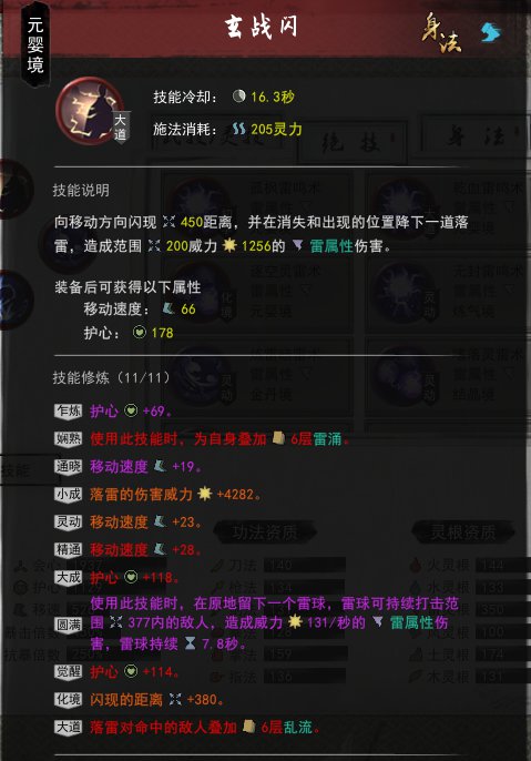 其实看数据就能发现,9s内主要输出还是在平a上,所以最后测试 疾雷闪鞭子+暗雷电球 打化身后期是没问题的,也算是秒了,但是悟道就停吧。雷修没那个本事。等灵雷术词条什么时候生效再翻身吧。这里贴出各技能图片,基本是最好的了,除了绝技是ce刷拍卖的,其他都是手刷的。