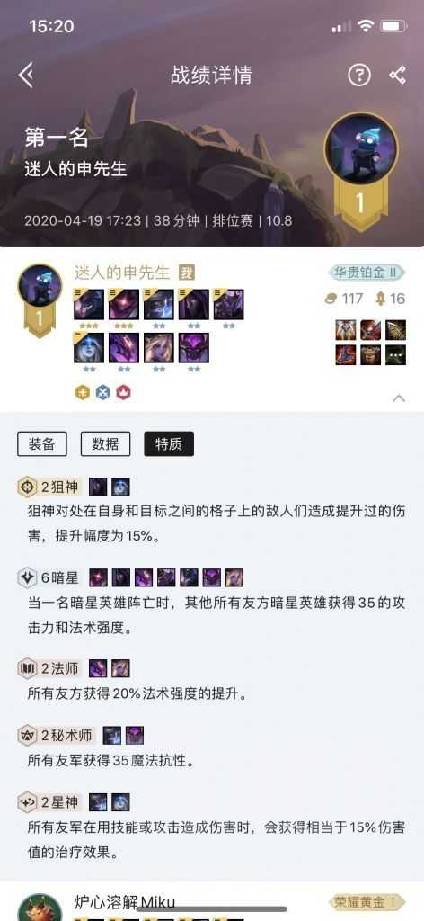 最近用六暗星狠狠的上了一波大分,阵容成型后没什么特别的天敌,除非是各种天胡狗。正常来说,能阻止你上分就只有同行了,但是可能是分段原因,同行基本不会运营,都是早早出局。