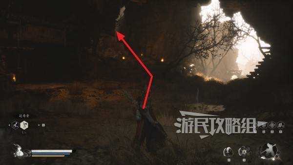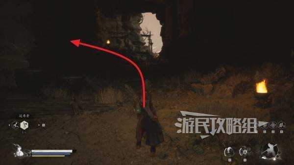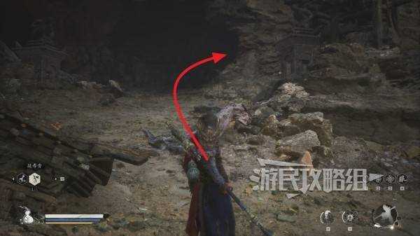 进门之后可以看到前方有一个巨大的山洞,进门往右走。