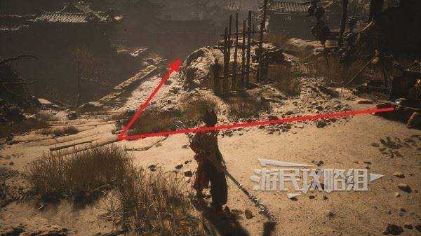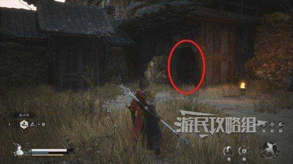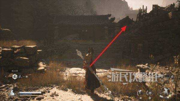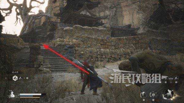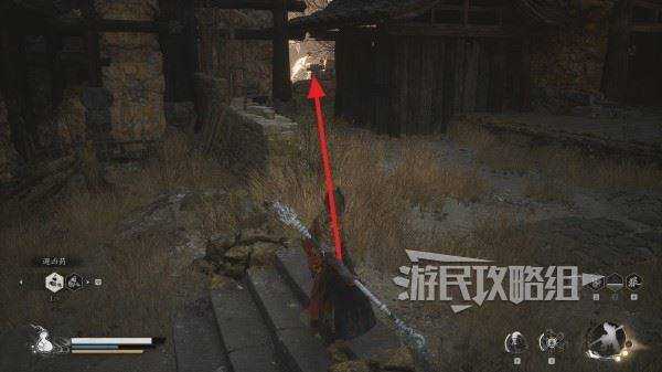 前方可以看到三层围墙和一个楼梯,上楼梯后直走往右看,可以看到一个小隔间里有个发光的罐子,击碎罐子即可获得醒酒石。