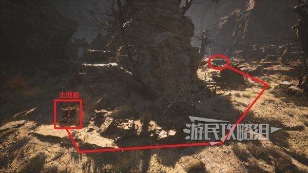 传送到土地庙之后,往右边的大区域走,进入下层通道中的门(参考下图)。