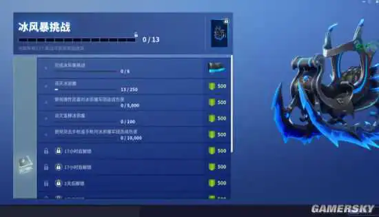 1.完成冰风暴挑战(0/6)奖励枪械皮肤一个。