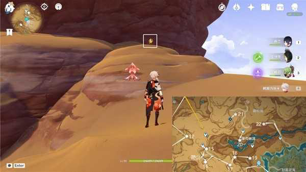 ▶利用风元素角色,吹散散落的沙堆,完成限时挑战;