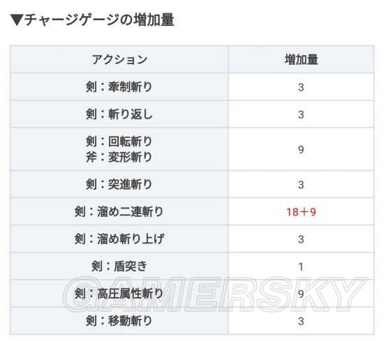 盾斧获取能量点的招式:剑形态,盾突1,蓄力斩18+9,高压属性斩/回旋斩9,gp/其他攻击3;斧形态,变形斩/属性强化回旋斩9。
