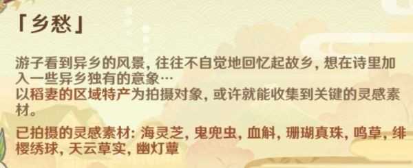 2、应要求,前往拍摄四种稻妻区域特产。(该任务中不可以使用留影机小道具,只能用主界面的拍摄功能。)
