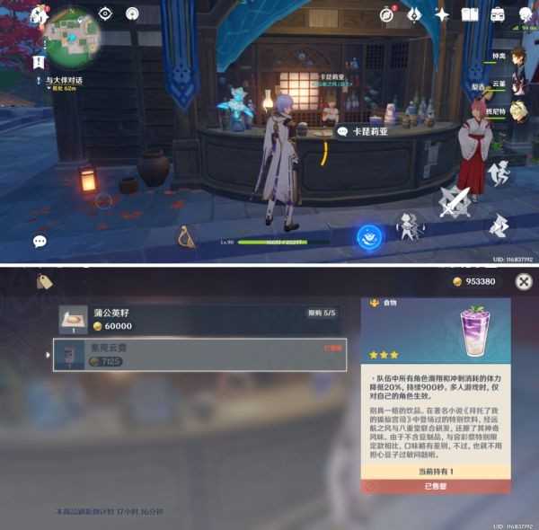 紫菀云霄:需花费7125摩拉(每日限定一杯)