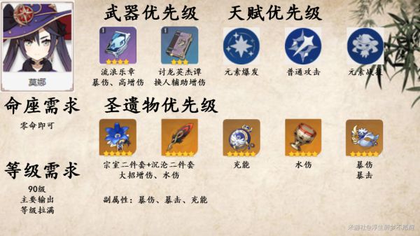 《原神》中角色之间的元素反应加上技能搭配可以形成强力的技能组合,其中核弹流莫娜很多玩家都想要尝试,还不知道怎么搭配阵容装备的玩家请看下面“浮生醉梦不愿醒”分享的《原神》莫娜核弹流阵容搭配及输出手法教学,希望能够帮助大家。