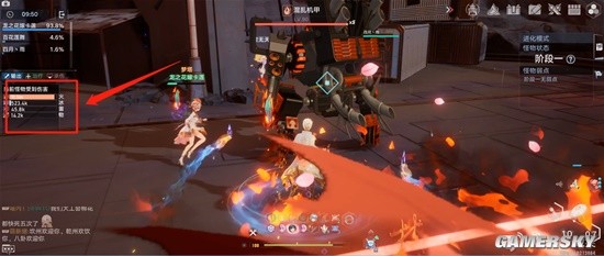 怪物进化后,弱点也会跟着变化,使用进化前受到属性伤害最低的两个元素作为新弱点。左侧这里可以看到当前对战中,当前怪受到了什么属性的伤害比较多。那么到了下一个阶段,怪就会变成弱后面两种属性的存在·。比如说目前对怪造成伤害高的是火和冰,但是雷和物理的伤害不高,那么到了下一个阶段,怪就会变成弱雷和弱物理属性的。(属于是让输出不高的两种属性也能多打更多的伤害)