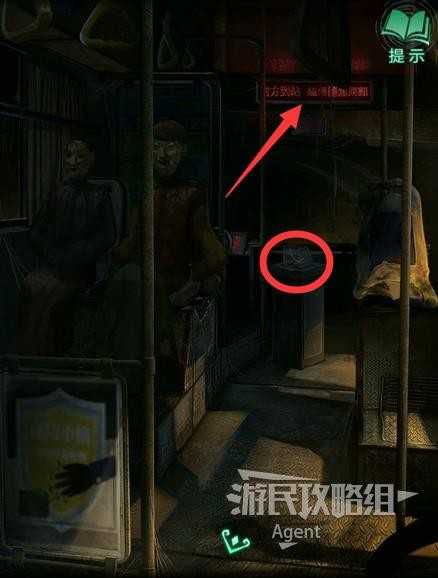 探索公交车,依次查看车内各种物品。在公交车车门上,拿到民国纸币。