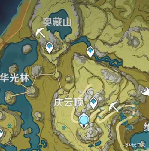 奥藏山的是下面洞窟哦,庆云顶的话其实传送矛点附近也有几个点,不过中间距离较远,就不标注了。