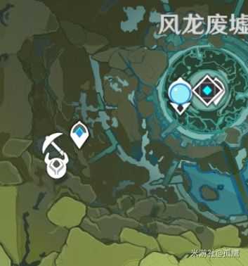 这个点就比较分散了,传送点往矿点方向走,近点有两个,下面有个冰系骗骗花,飞下去看得到小洞穴一个,然后在空中观察一下,左右各一个,不过距离较远。