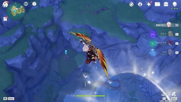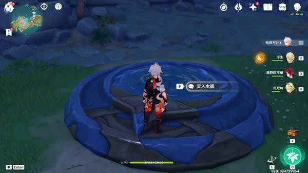 沉入水面,我们岛屿形态就可以进行切换了。切换岛屿之后我们朝左边转个头,可以看到一个风元素方碑,触发产生一个风场。