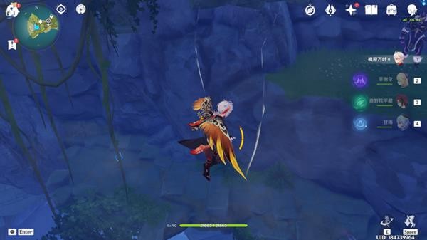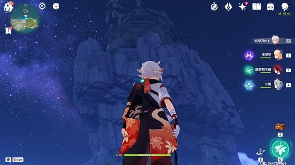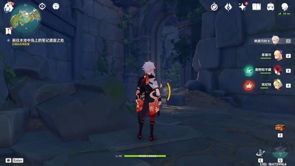 我们乘着风场往上飞到顶,然后朝西北方向看,可以看到一个雷锤哥,任务接取就在雷锤哥下一层的左边,有一本笔记。