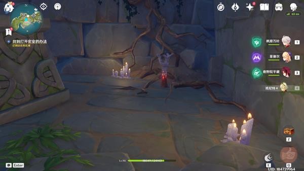然后走进任务区域,会有一道铁门落下,需要我们根据顺序点燃火把。我们进门的第一个火把就是第一个要点的,之后点燃这个火把左边的火把,最后再把剩下的一个火把点燃即可。